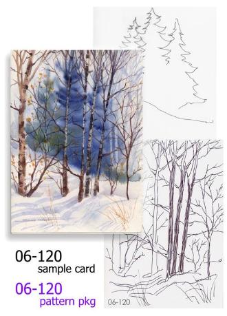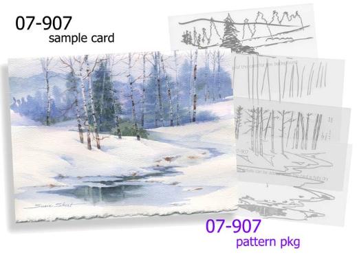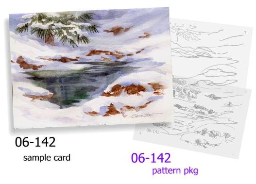 | Now you can learn how to paint your own Winter Holiday Greeting Cards or miniature paintings in watercolor with Susie's easy to follow step-by-step instructions. These mini watercolor lessons include a color print of an original watercolor card by Susie Short plus line drawing guides (painting patterns) ready for transferring to your own blank card or watercolor paper. Permission is granted to paint from Susie's designs for personal use only. |